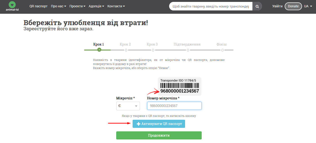 Дуже просто. Потрібно перейти на сайт https://animal-id.net і натиснути кнопку "Зареєструвати тварину". Це абсолютно безкоштовно.